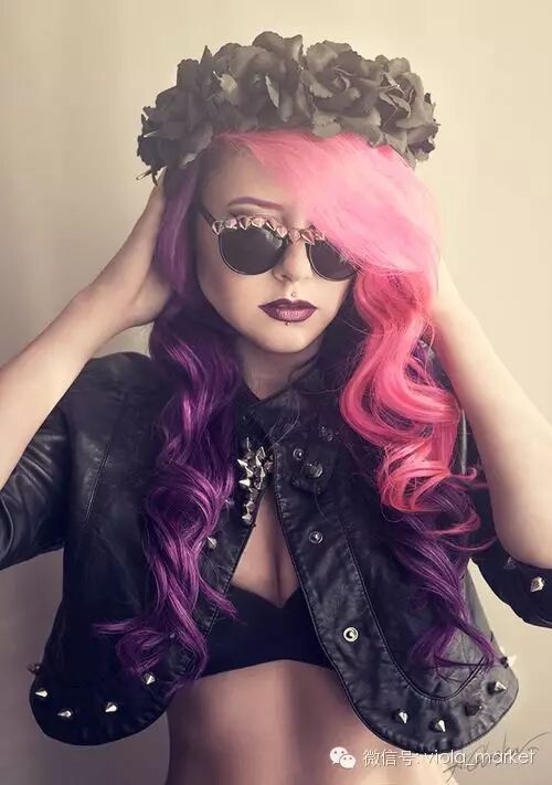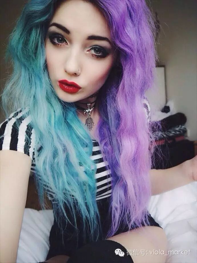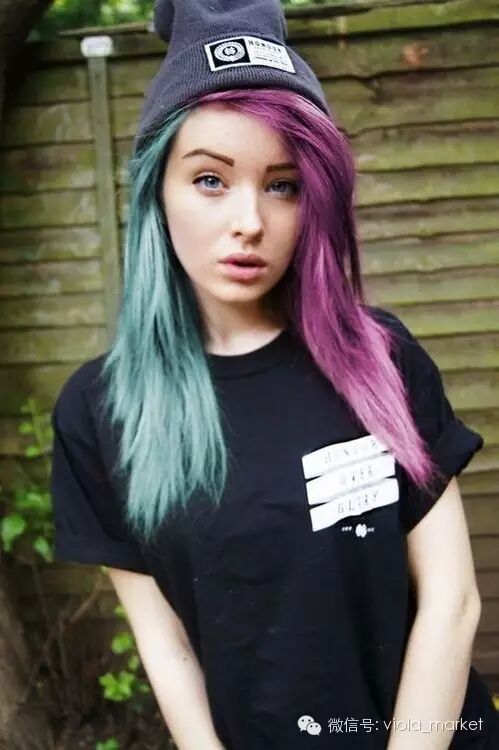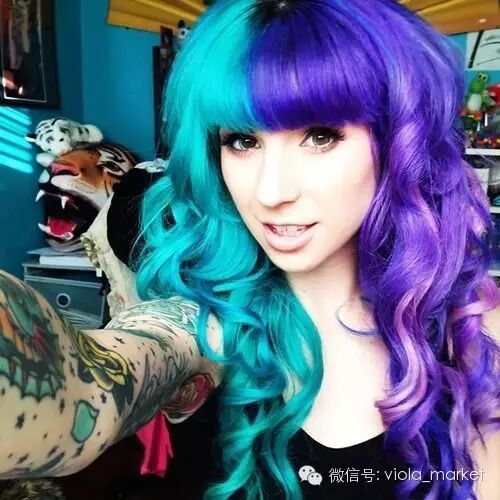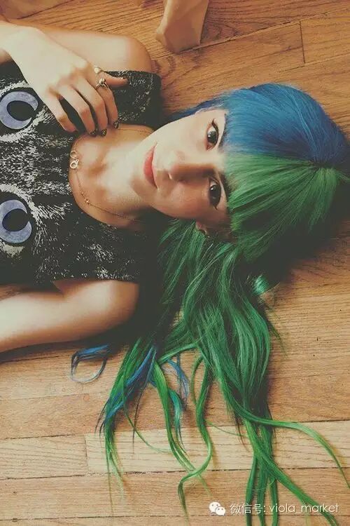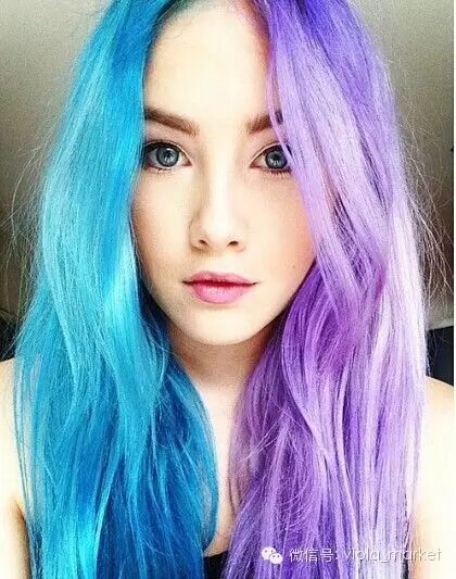 另一些偏爱更多彩色发色的,选择两种近似色来染,比如蓝紫