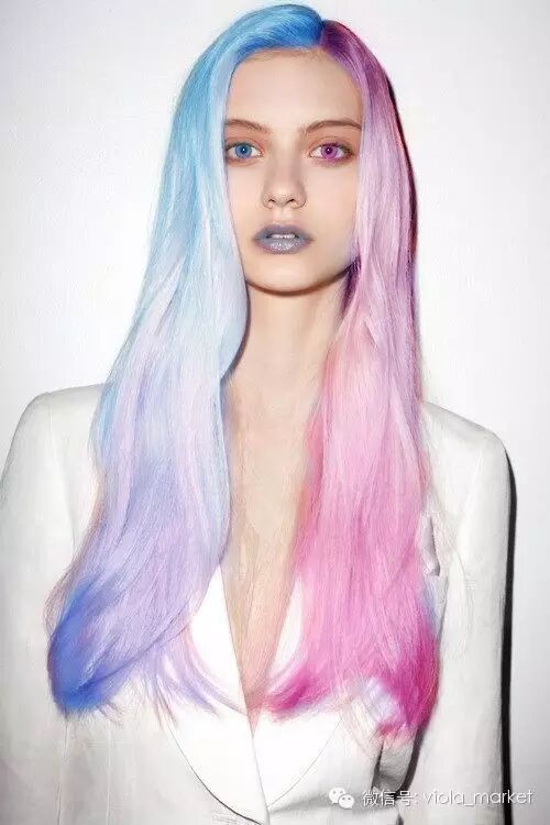 什么渐层染、发尾染,银发染、像素化染,统统已经out了!现在出现了一种染发新趋势“对半染”!顾名思义,将头发中分,然后依分缝将头发两边分别染成不同的颜色,制造吸睛效果。