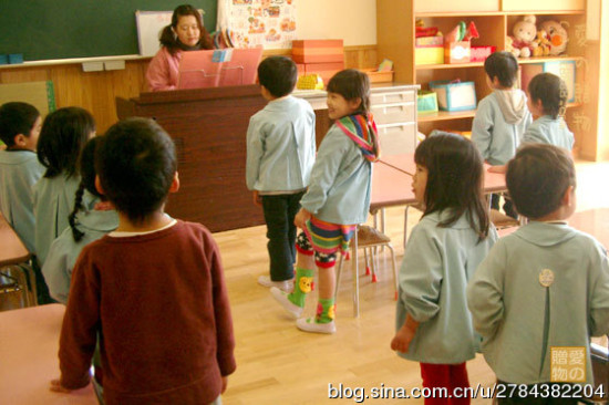 而日本的幼儿园,按日本的“儿童福利设施最低基准”规定,一位老师所照看的儿童,最大比例是:0岁最多3名,1-2岁最多6名,3岁最多20名,4岁最多30人。儿童人数超过这个数字就必须分班。我们当时居住在名古屋的郊外,因为远离拥挤的市中心,所以mii在日本进的那家公立幼儿园,一个班15个孩子都不到,由两个老师同时负责照看着。孩子们除了跟老师学做手工时,会乖乖呆在教室里外,其余时间要么在幼儿园的大操场上玩,要么由老师领着去附近公园玩。日本老师对孩子的户外活动很重视,因为在日本传统的育儿观中,将孩子称为“风的孩子”,认为小孩子就应该多在户外活动,多吹风多晒太阳,才会成长得结实健康。