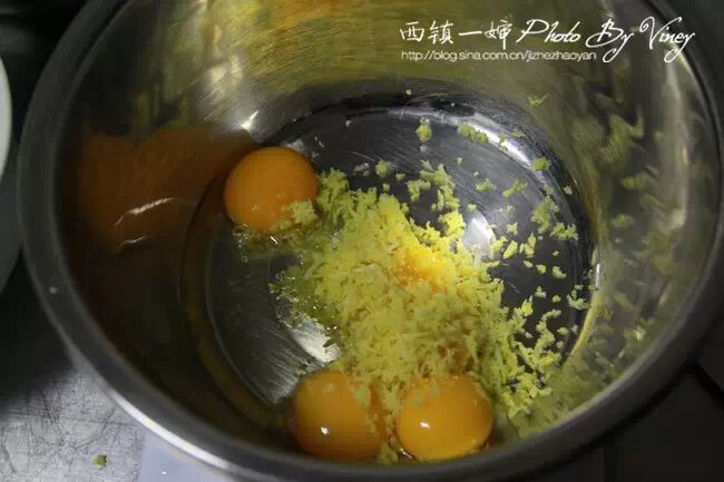 材料:柠檬皮8克,鸡蛋四个(约50克一个),蜂蜜15克,细砂糖75克,低筋粉90克,黄油70克,盐1克,泡打粉3克。