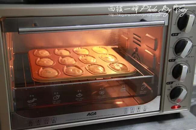 15、烤箱预热180度,中层上下火,烤10分钟左右即可,快烤好的时候,玛德琳的小肚子会鼓起来的。