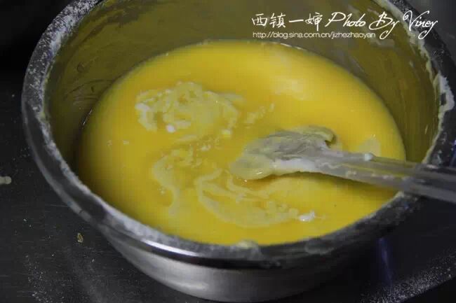 10、黄油事先隔热水融化成液态,稍微放凉后备用。