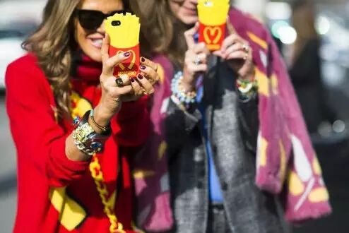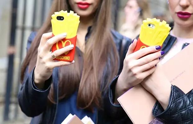 自从2013年冬天JeremyScott担任了品牌的设计总监之后,更是将Moschino以童心带动潮流的理念发扬光大,后来出的每款手机壳都超级吸睛!2014秋冬的麦当劳薯条手机壳几乎人手一件,没拿个薯条都不好意思在时装周晃呢。