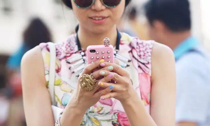 多彩的衣服和指甲,手机壳也可以稍微花哨一些。