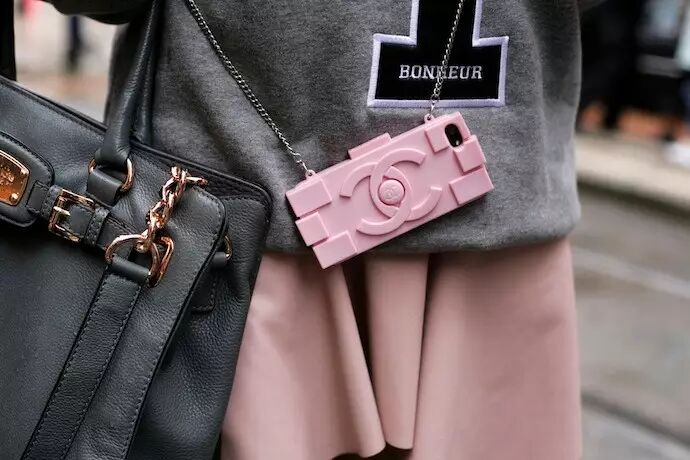 Chanel家的乐高包和香水瓶包都是时尚达人的大爱,常常看到她们既挎包又拿同款的手机壳,不过如果你买不起香家的包,买个手机壳也可以有以假乱真的效果。