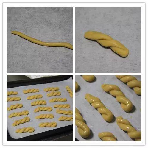 11、都拧好以后,放进铺了油纸的烤盘中。