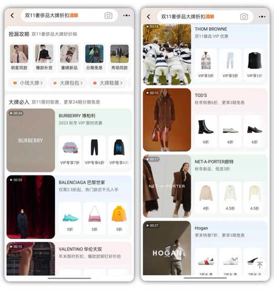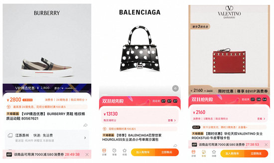 11月3日,Balenciaga巴黎世家、Valentino华伦天奴、Versace范思哲、Thom Browne、TOD‘S等超30家奢品品牌的天猫旗舰店集体开启双11官方直降,开启一场线上“奢品特卖会”。