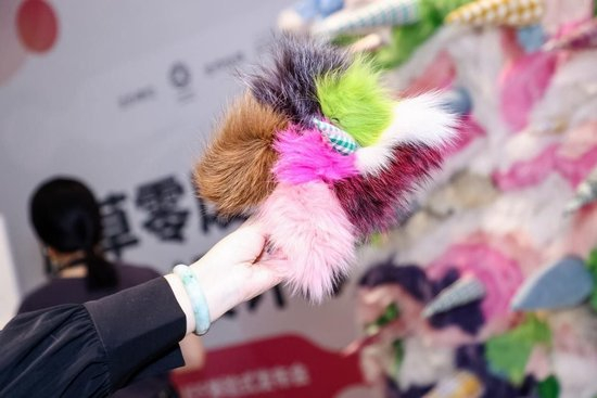 两年多来,Furmark®标志的推广已初见成效,越来越多的人正视到皮草“源于天然、回归天然”的环保和可持续再生的属性,也沉醉于皮草的高端奢华之美。国际毛皮协会中国CEO王晶在开场致辞时表示:“大家都知道,皮草服饰一直是奢侈品的代表,皮草元素更是每个冬季流行趋势发布信息中的亮点。经过设计师们的不断努力,天然皮草已经从时尚元素之一,逐步演变成为一种无季节性的服饰原料甚至是文创作品的材料。这就使得我们想要进一步探索天然皮草的边界,这次和当代艺术创作者施乐的合作就是在这样一个期望中的跨界尝试。 我们放弃了所谓的专业知识的指导,不考虑它本是服饰原料的一种,不使用专业的皮草加工机器,甚至对原来的状态不做修整…。 单纯把这些不规整的皮草碎料作为一种媒介,放开思路,像艺术家运用手中的画笔和颜料去构思作品那样,尽情去表达自己对生活的感受和态度。感谢乐乐,让天然皮草这种服饰原料实现了跨界,同时又为我们很好地诠释了天然皮草一直以来秉持的环保理念:物尽其用,传承永恒。!”