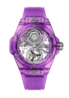 随着全新Big Bang自动上链陀飞轮紫色蓝宝石腕表的推出,宇舶表正式发布了一种全球首创且品牌专属合成蓝宝石材质,为高级制表领域增添了一种全新配色:通透的紫色。