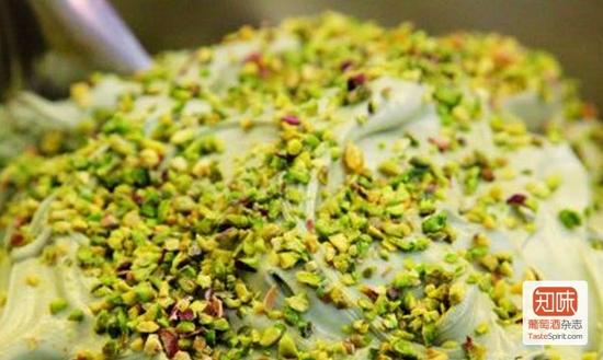 开心果味(pistacchio)的gelato从外观上看,gelato比美式冰激凌更为粗糙,这恰好在体现其内部完美的空气含量。空气的含量控制着冰激凌的松软度,外观粗糙的冰激凌,空气含量更少,口感更为浓郁绵密。通常美式冰激凌空气含量在60%左右,一些特别寡味的甚至达到100%,相比较,gelato因为制作冰激凌的奶底采用低速搅拌的工艺缓慢制作,空气含量通常在25%到40%的范围内,口味自然不可同日而语。也只有这样的冰激凌才值得慢慢品尝,让它缓缓融于你口中,感受它的细腻与丝滑,给你囫囵吞枣式会错过的许多享受。