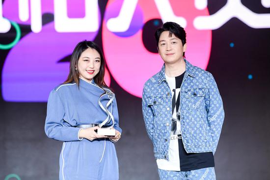 潘粤明为领奖嘉宾LOUIS VUITTON路易威登公关经理张墨女士颁奖。
