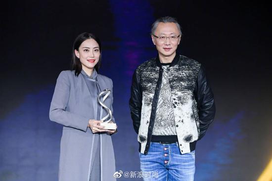 2020风格大赏明星领奖环节霍汶希获得新浪时尚2020风格大赏“年度态度女性”大奖,新浪网商业中心总经理王屹先生为其颁奖。