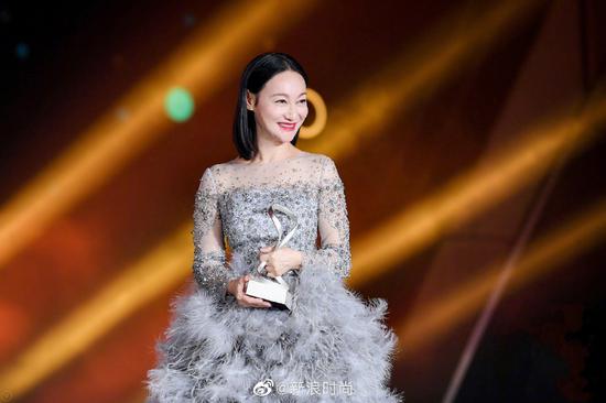2020风格大赏明星领奖环节惠英红获得新浪时尚2020风格大赏“年度风格人物”大奖,微博高级副总裁葛景栋先生为其颁奖。