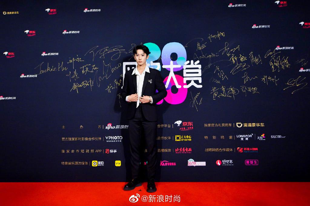 郝富申身穿纯黑西装礼服,内搭白色衬衫,清秀又帅气。