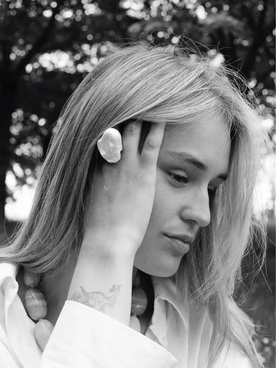 会使用乌木、晶石、海螺、巴洛克珍珠等等天然材质来制作首饰,选材和颜色都无限融入中性与自然色调;但都是很有存在感的“大块头”,搭配起来很出挑。