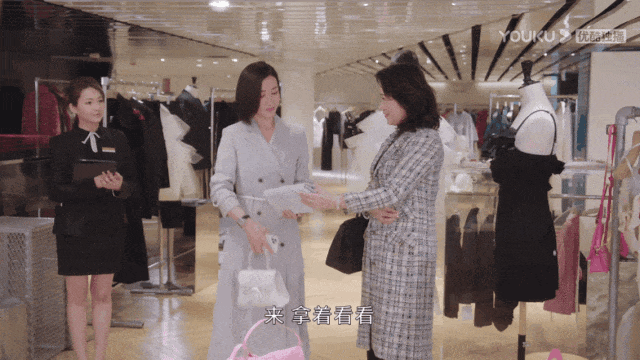 给还没看过剧的报友补补课:“方太”是剧中大Boss,佘诗曼扮演的Man姐原本是“台柱”主播,出走又回归之后晋升为副总监,一心想要整改电视部。这里是方太借逛街之名,“敲打”阿Man:我(老板)选中的人,你不能动!