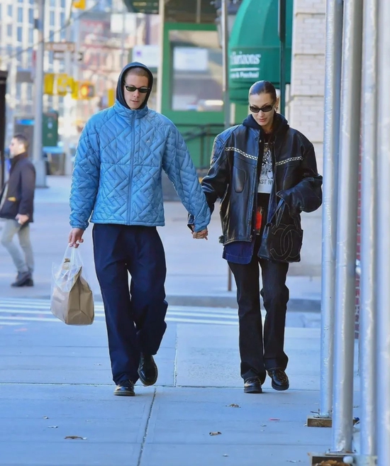 而 Bella Hadid & Marc Kalman 这对最近同样甜度爆表,屡次带来恩爱表现,甚至一跃成为新晋‘情侣穿搭模版’。