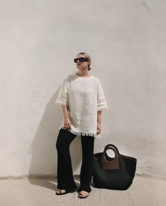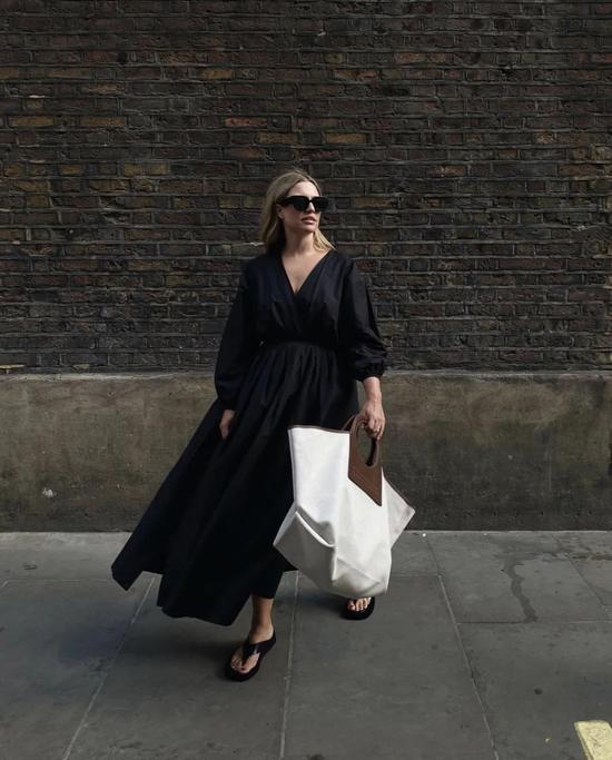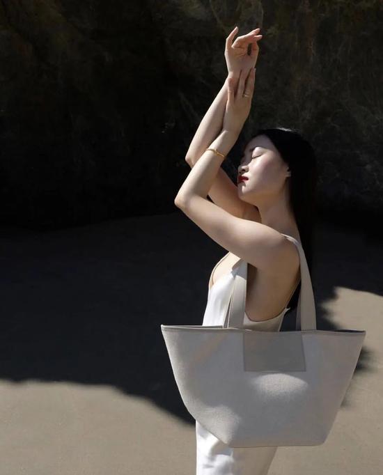 使用起来更方便,泰国小姐姐Sara Legge直接用它来装花,也不失为一种浪漫的拍照方式~也可以试想一下,下班后带一束花回家的日常,有那么一只好看又好装的托特包真的很棒。