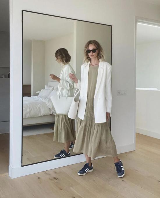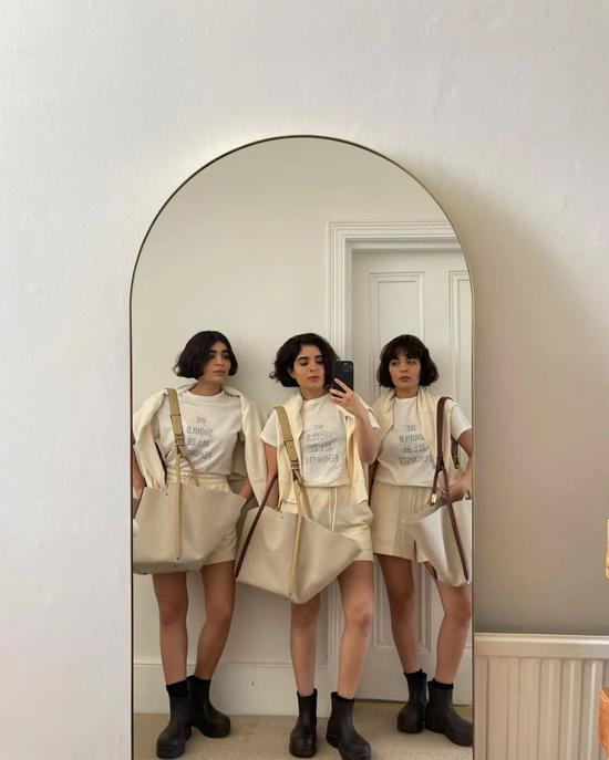 老熟人Anouk Yve最近就常拎这一只!白色的包包夏天背起来很清爽,搭配卡其灰连衣裙可好看啦~对比高妹Anouk背这款包的效果,小个子编辑(本人)觉得——嗯,我好像也可以?