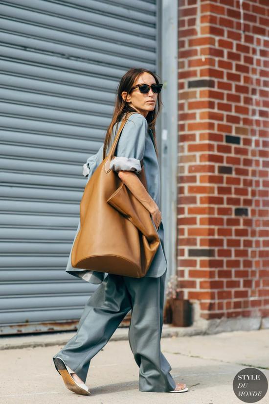 最近的街拍里就出现了不少拎着帆布大包赶时装周的,比拎着当红It bag的女孩看起来更有生活感,是资深时装人都追求的“放松的时髦”。
