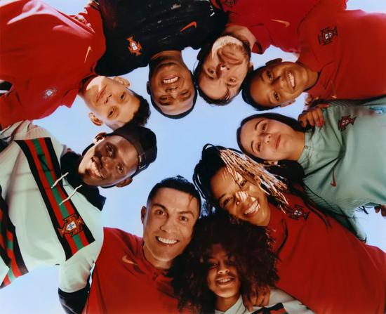 低饱和度的绿色来自葡萄牙国旗,也与上衣领口相呼应。球员编号外用同色圆圈装饰,更显鲜艳和高调,让红配绿这个被时尚圈误解多年的“死亡配色”呈现出典雅与激情的融合。