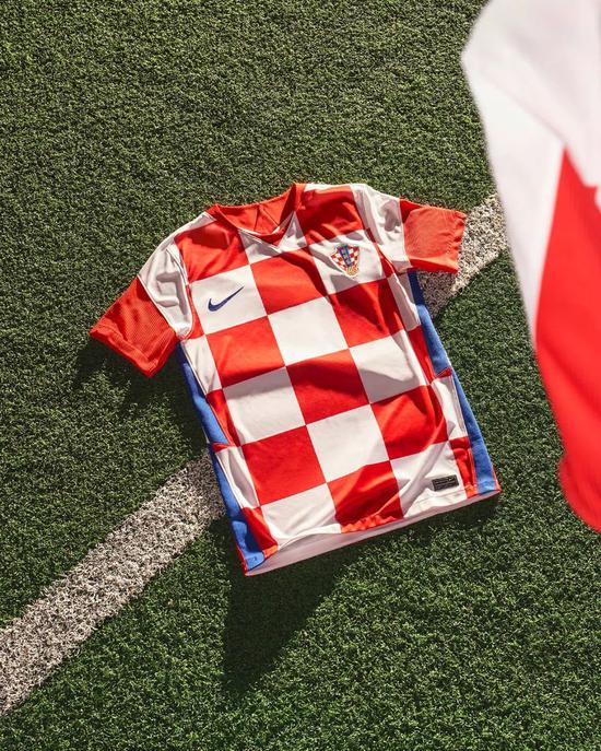 论今年欧洲杯,哪个队的球衣最有时髦感,那必须是正面红白格,耐克Swoosh和克罗地亚队徽对称嵌入在白格中的克罗地亚队球衣。棋盘格的设计连Nike足球服装副总裁Scott Munson都称赞不已:”今年克罗地亚主场球衣是球队传统与当代流行的完美融合。“