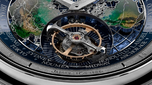 这款腕表集成了陀飞轮和世界时两大复杂功能,搭载积家自产的948型机芯。