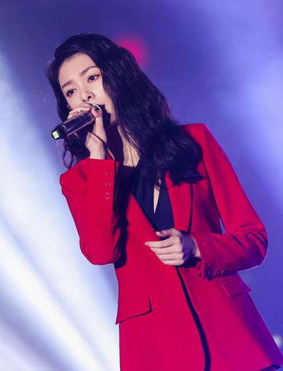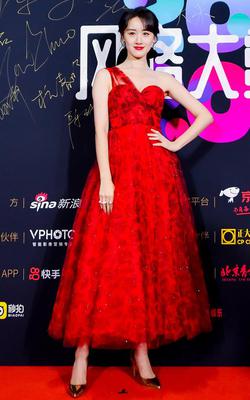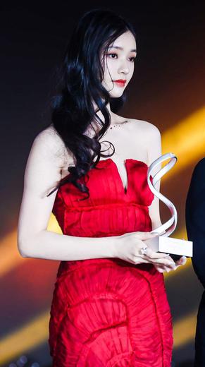 THE9-许佳琪/#许佳琪高开叉红裙# -